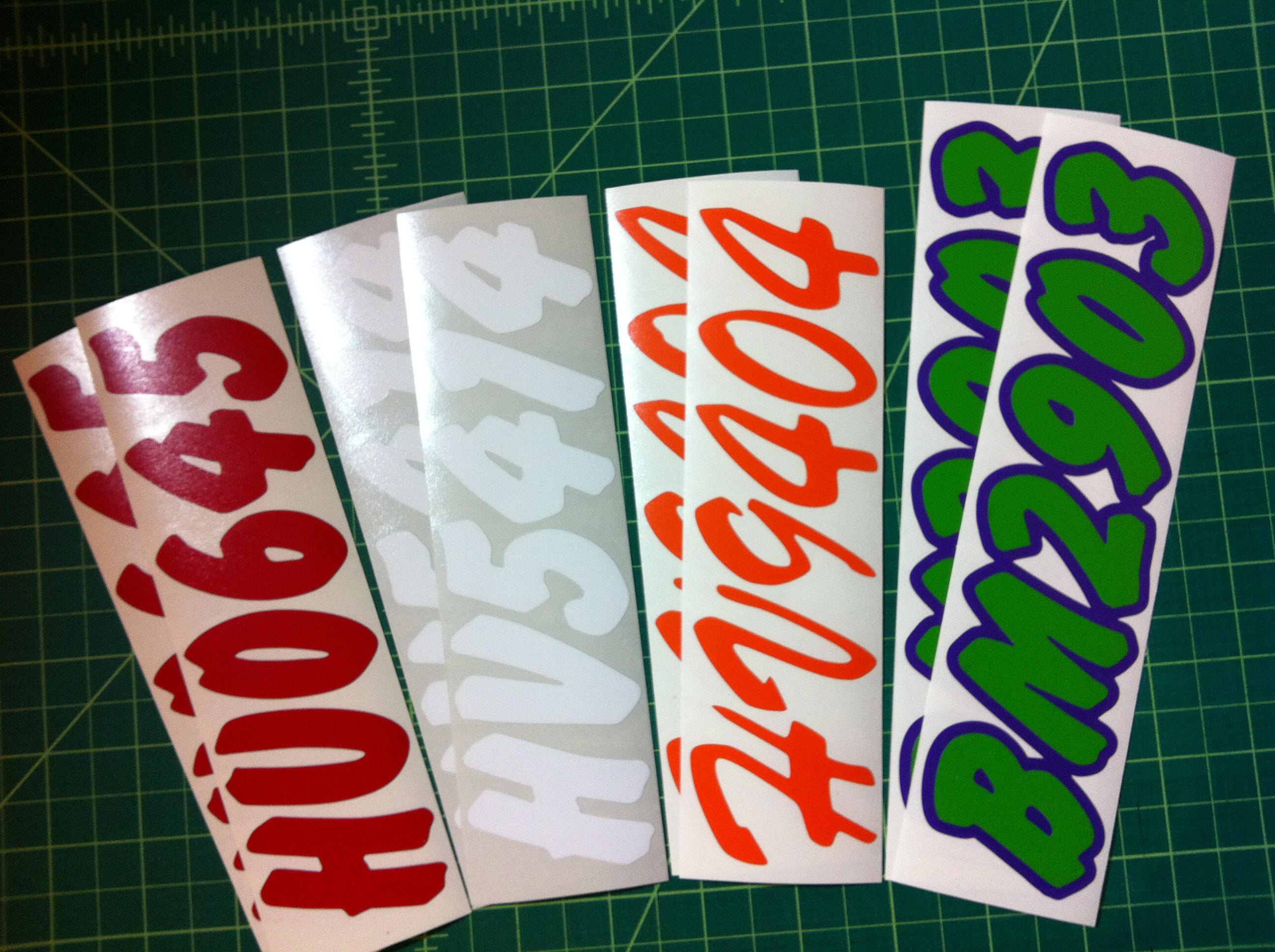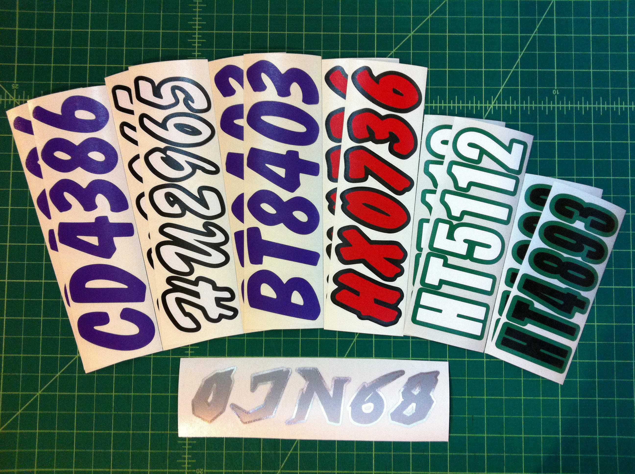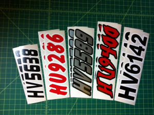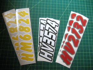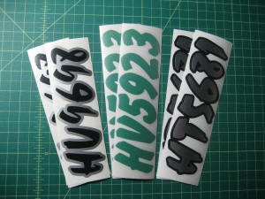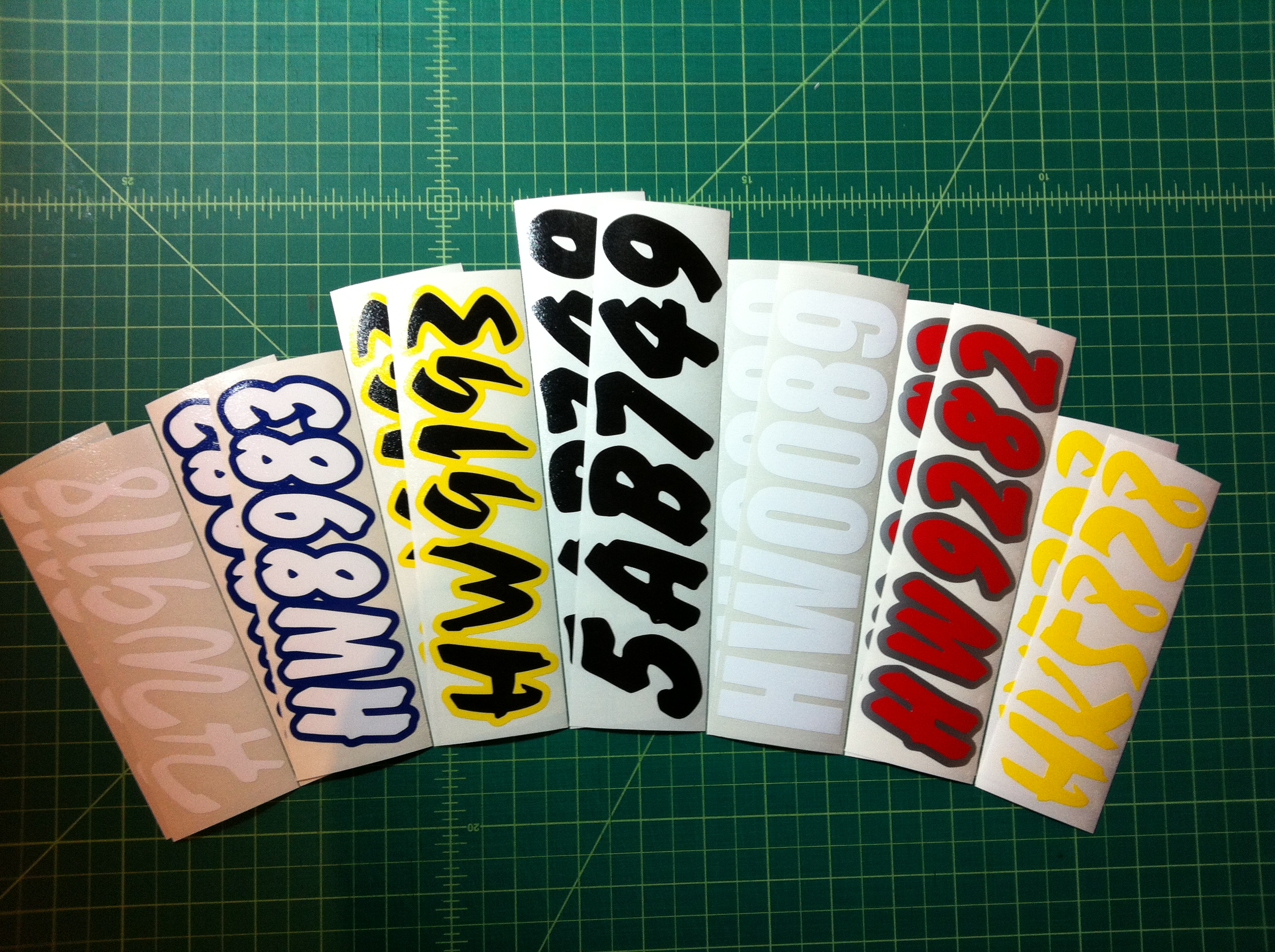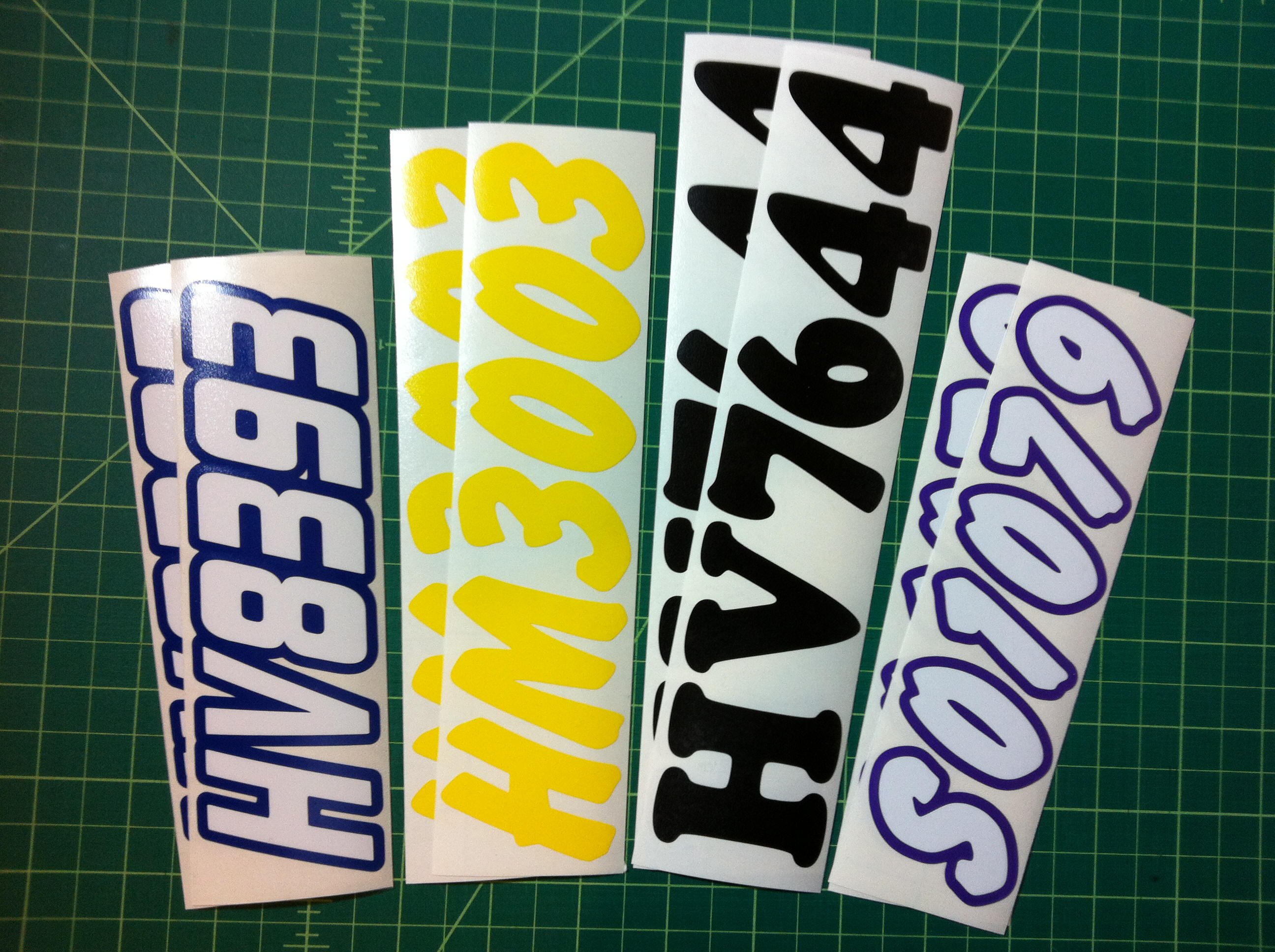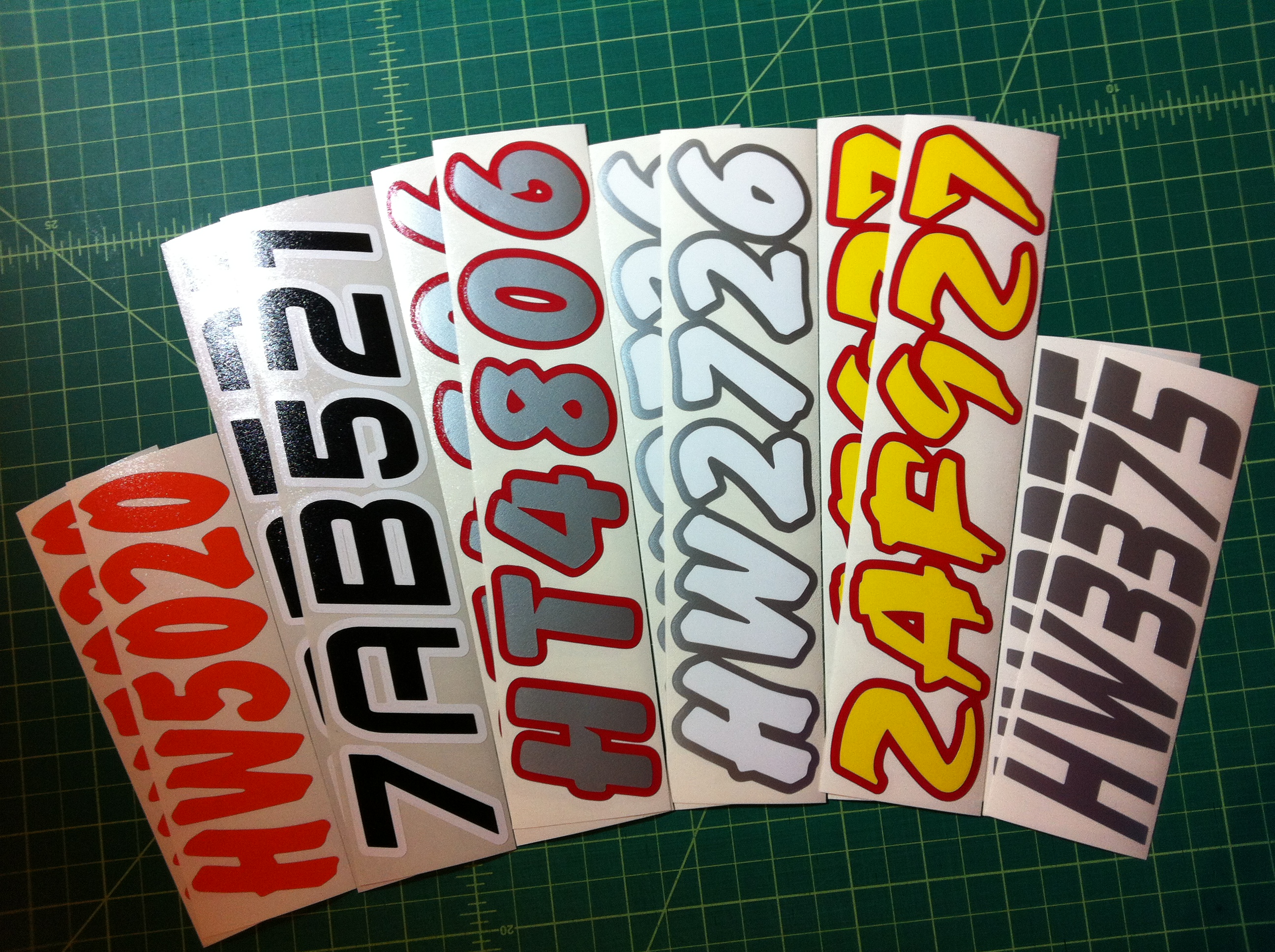 Just a few samples snowmobile registration numbers with and without outline options... (Note: the background color on some of the samples is for visual only)