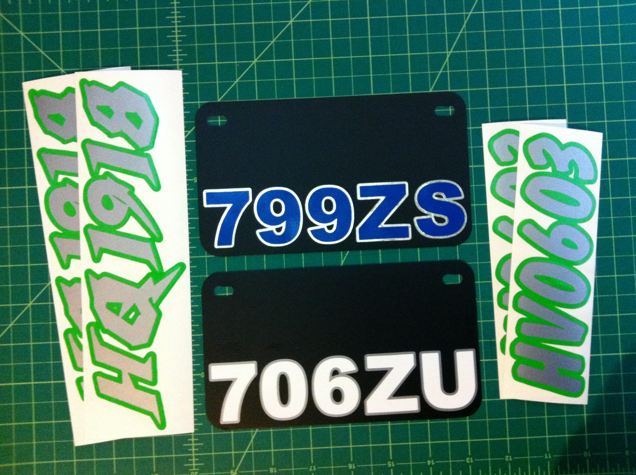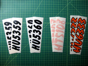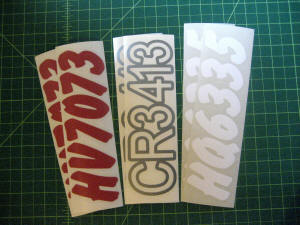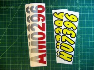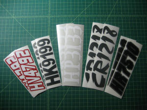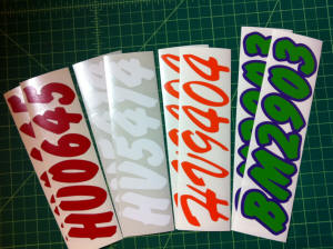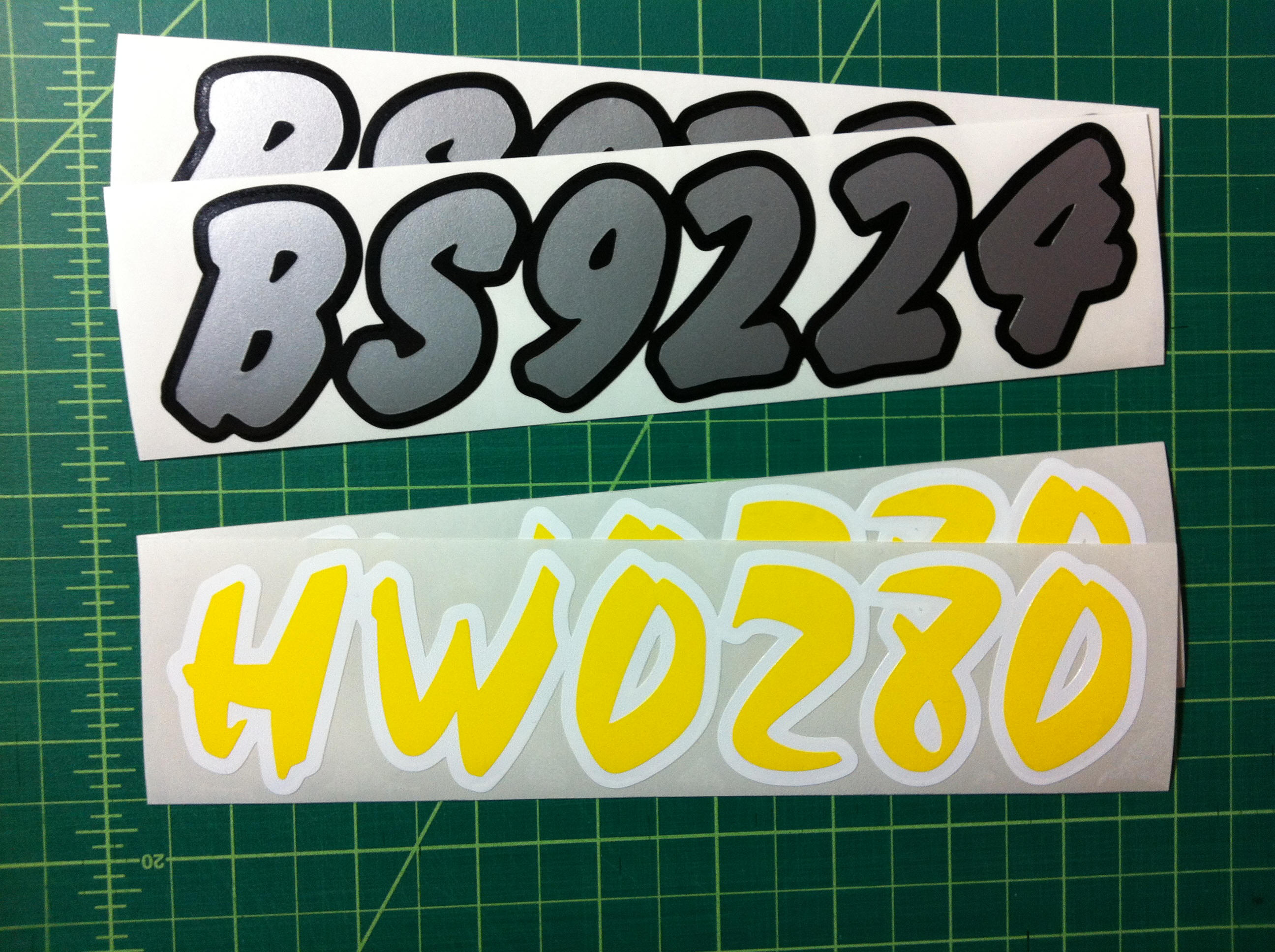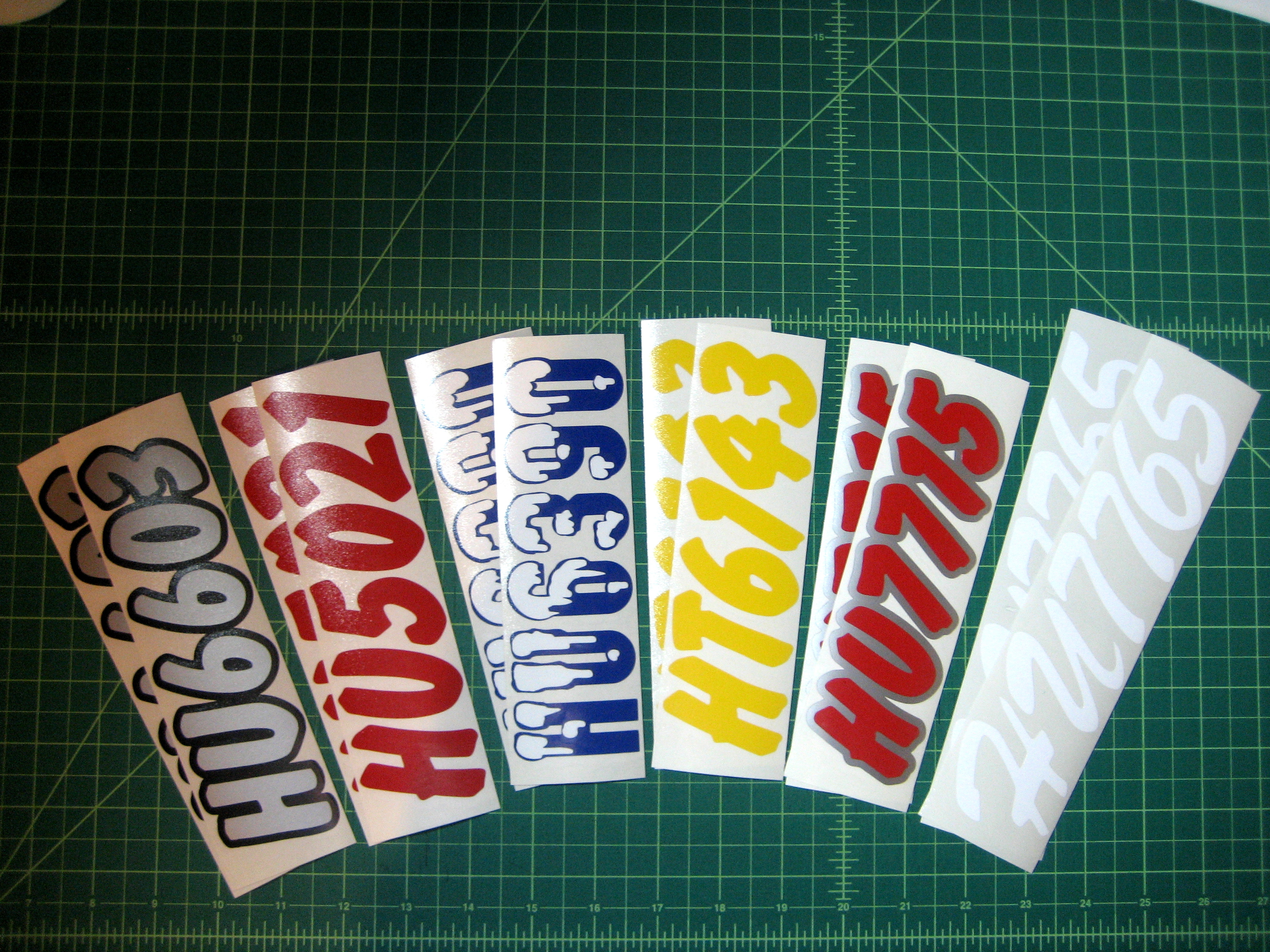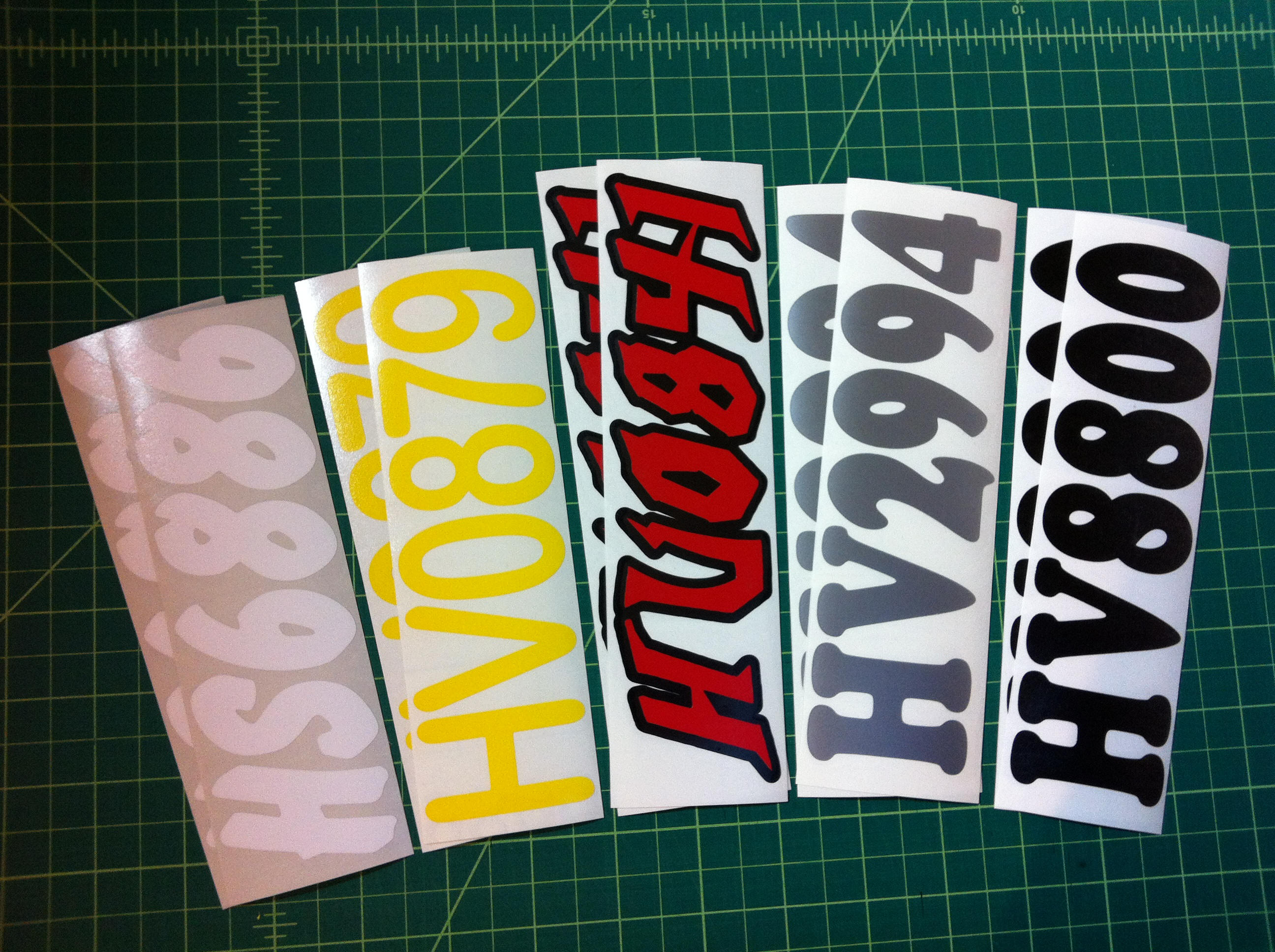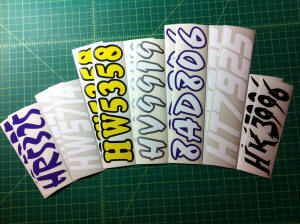 Just a few samples snowmobile registration numbers with and without outline options... (Note: the background color on some of the samples is for visual only)