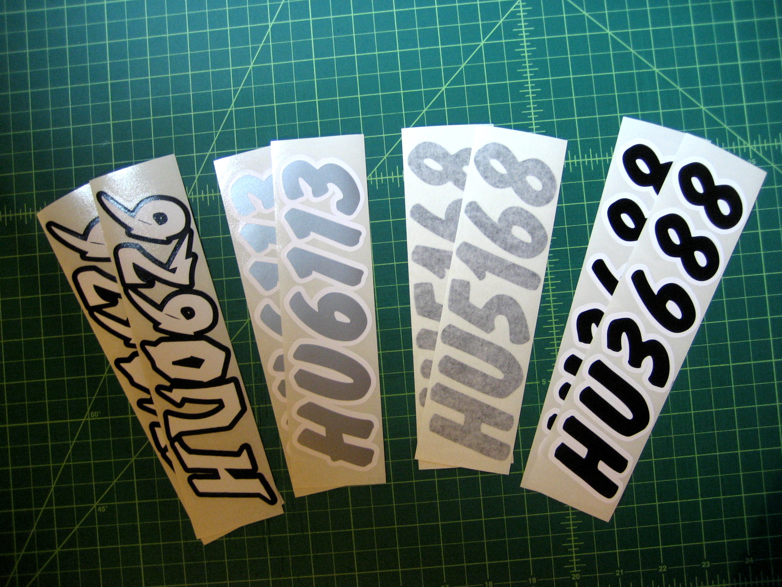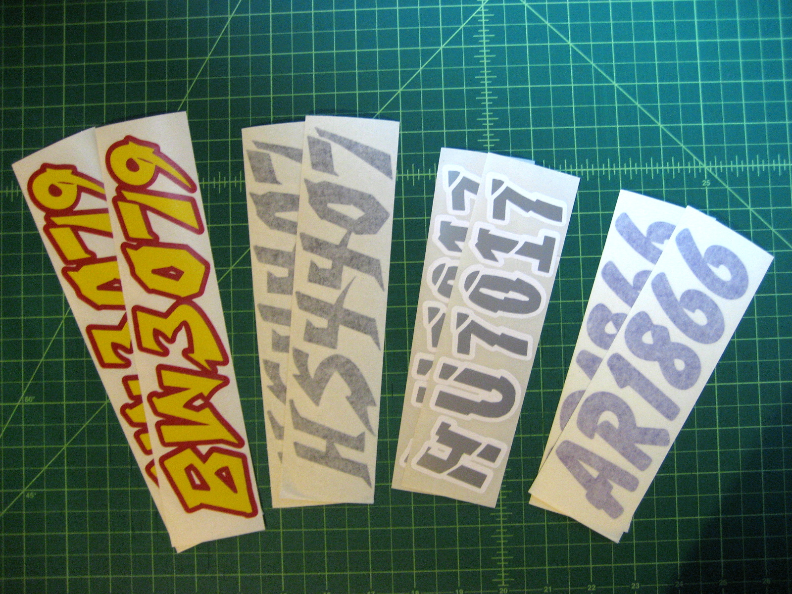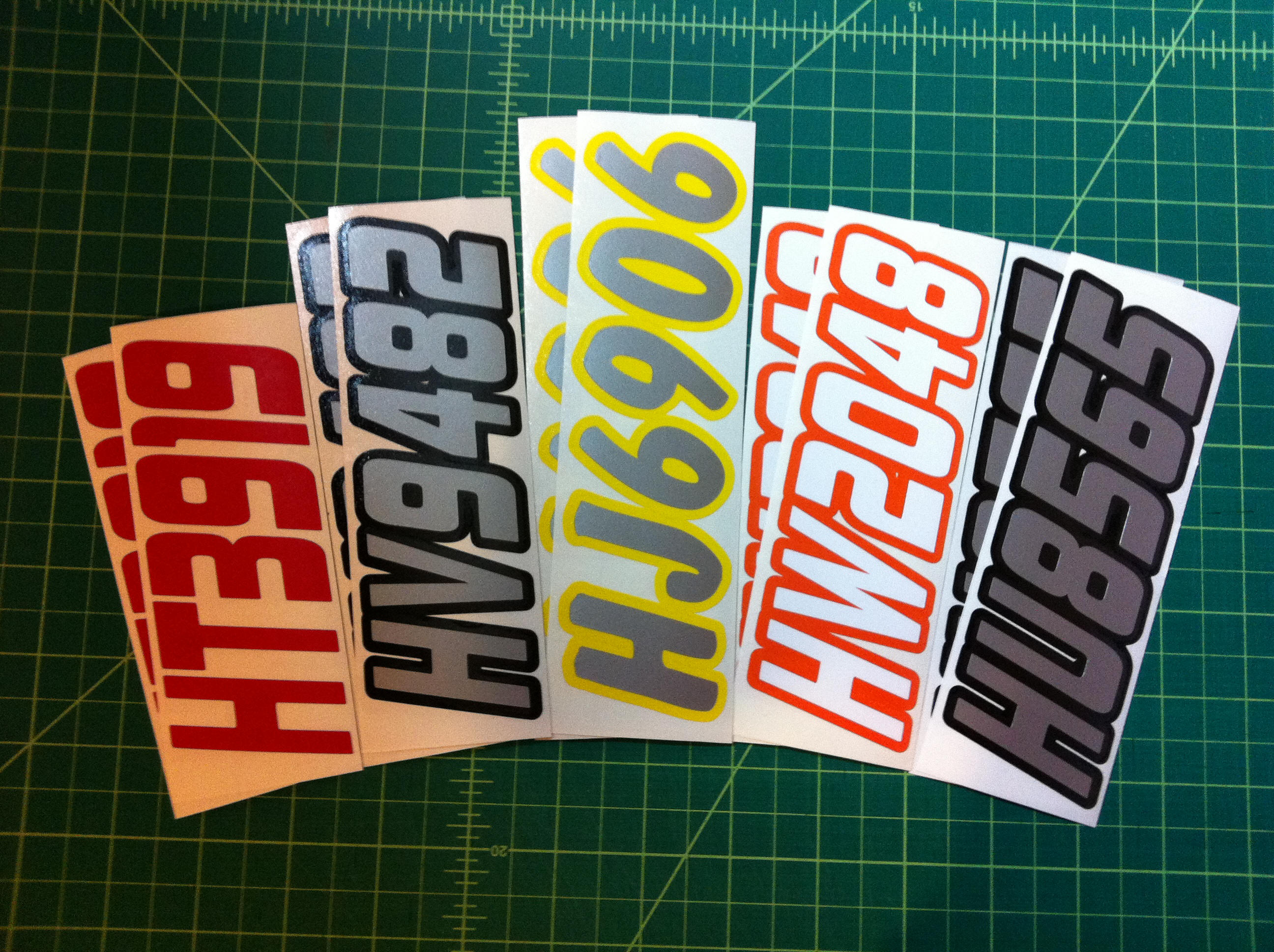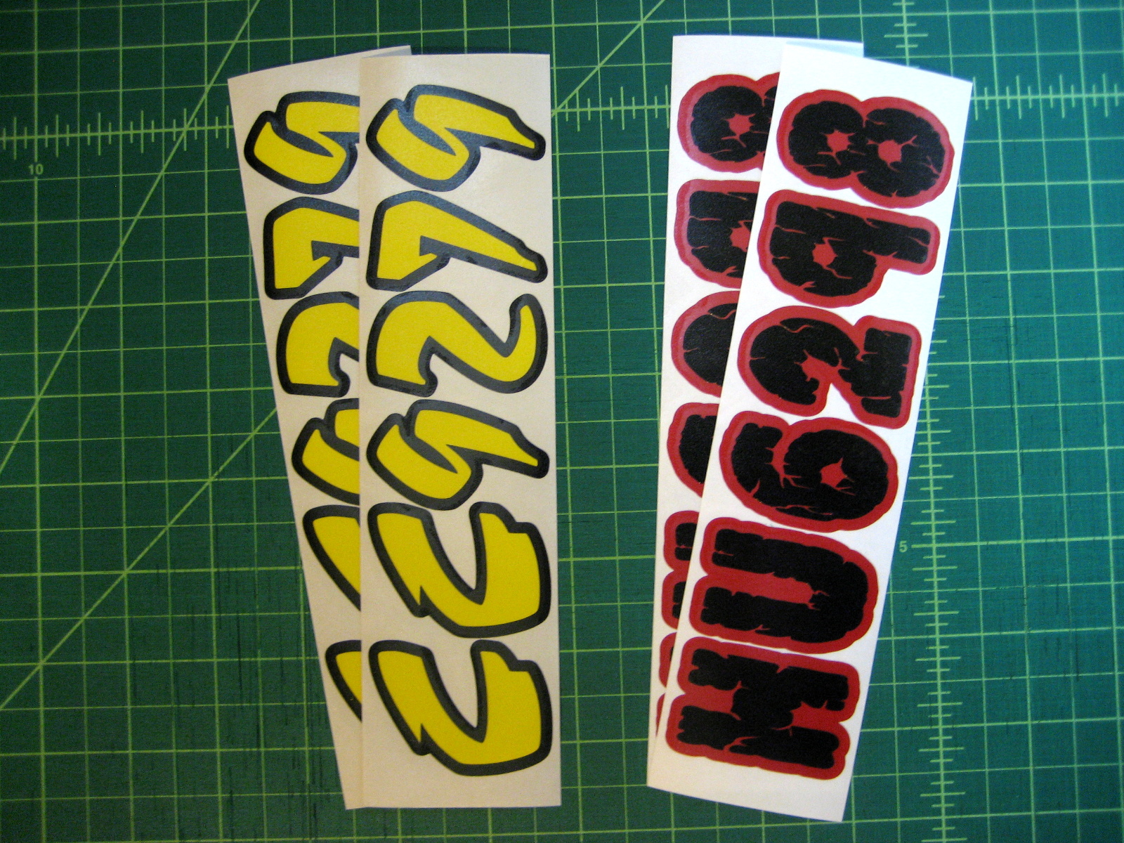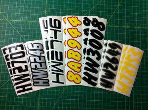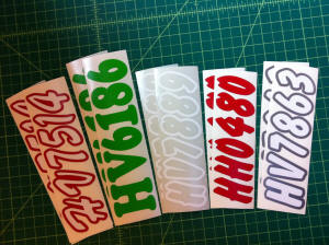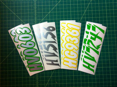 Just a few samples snowmobile registration numbers with and without outline options... (Note: the background color on some of the samples is for visual only)