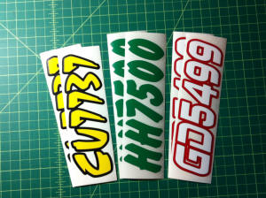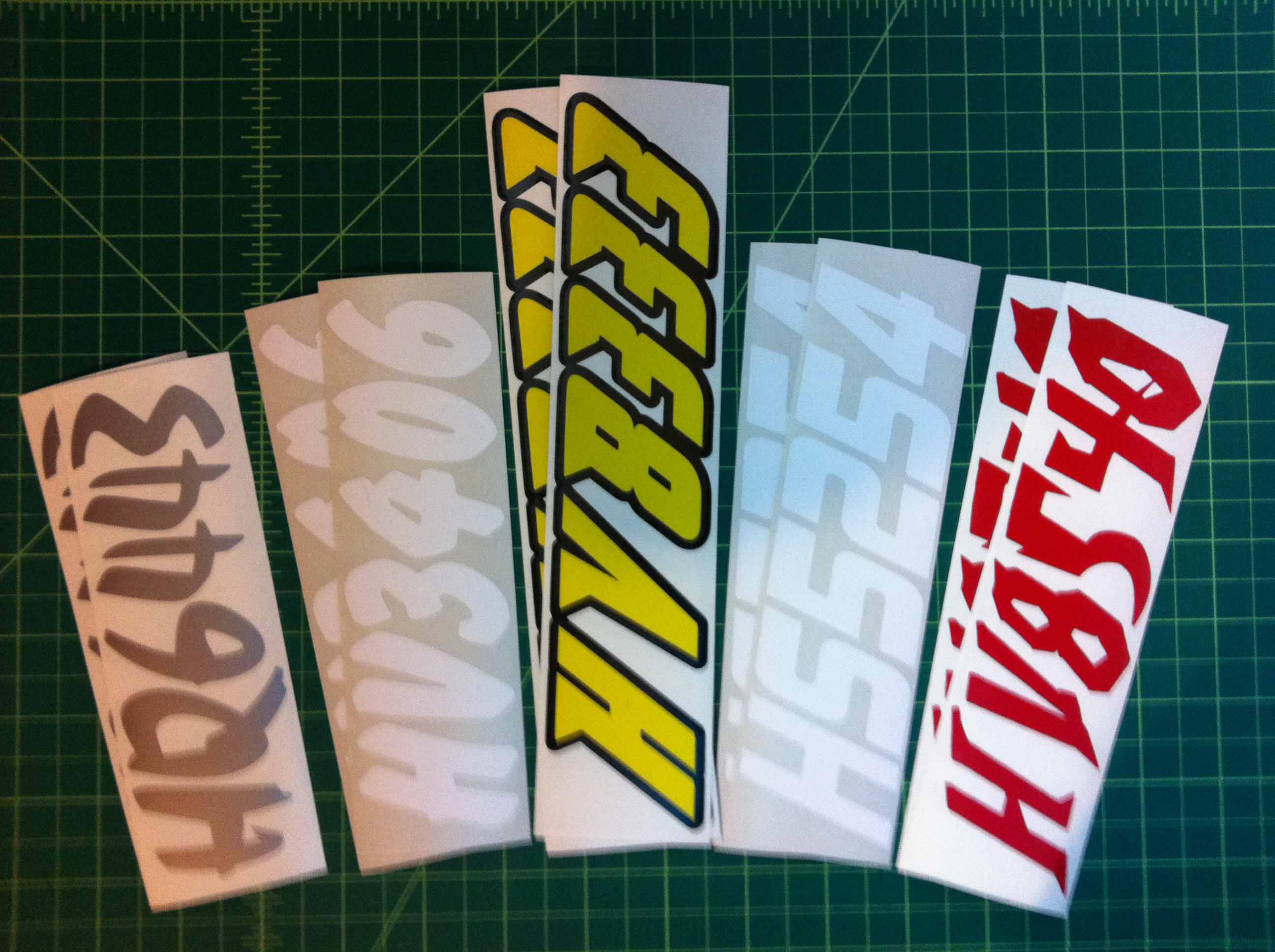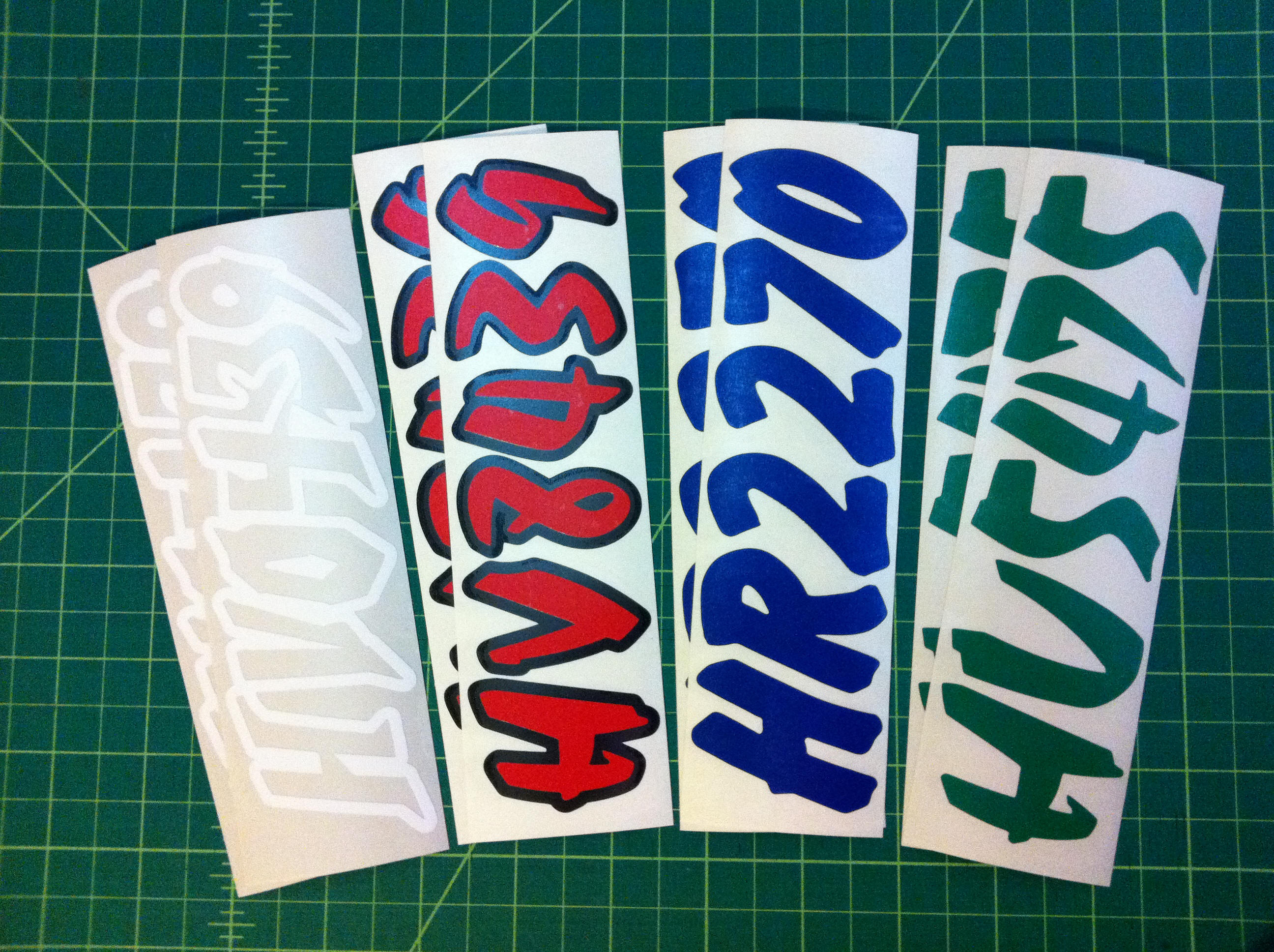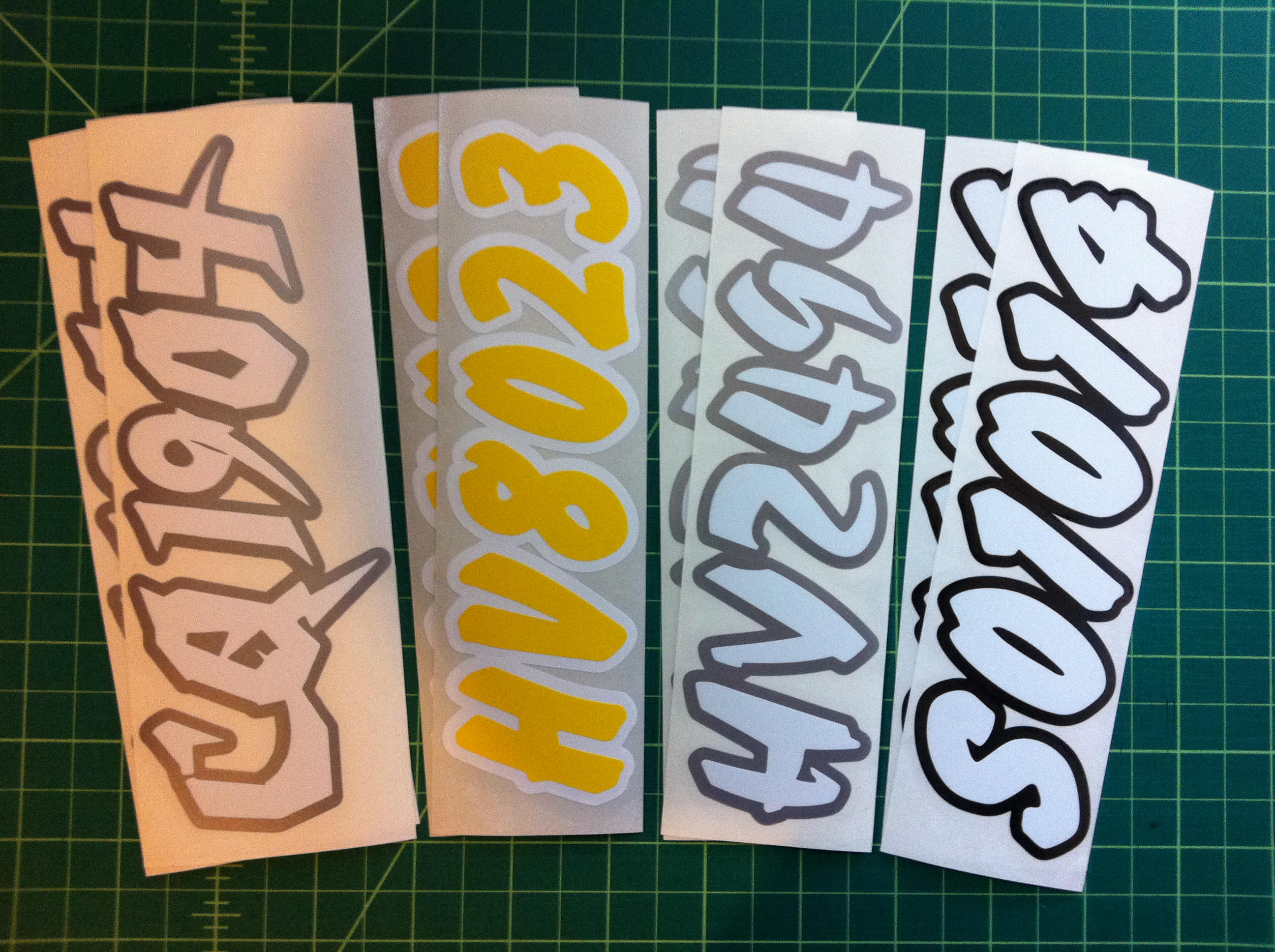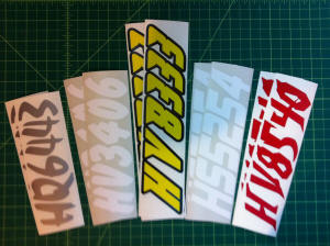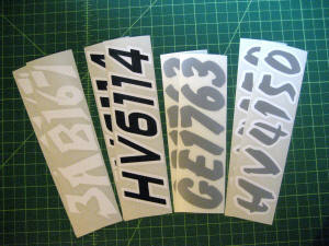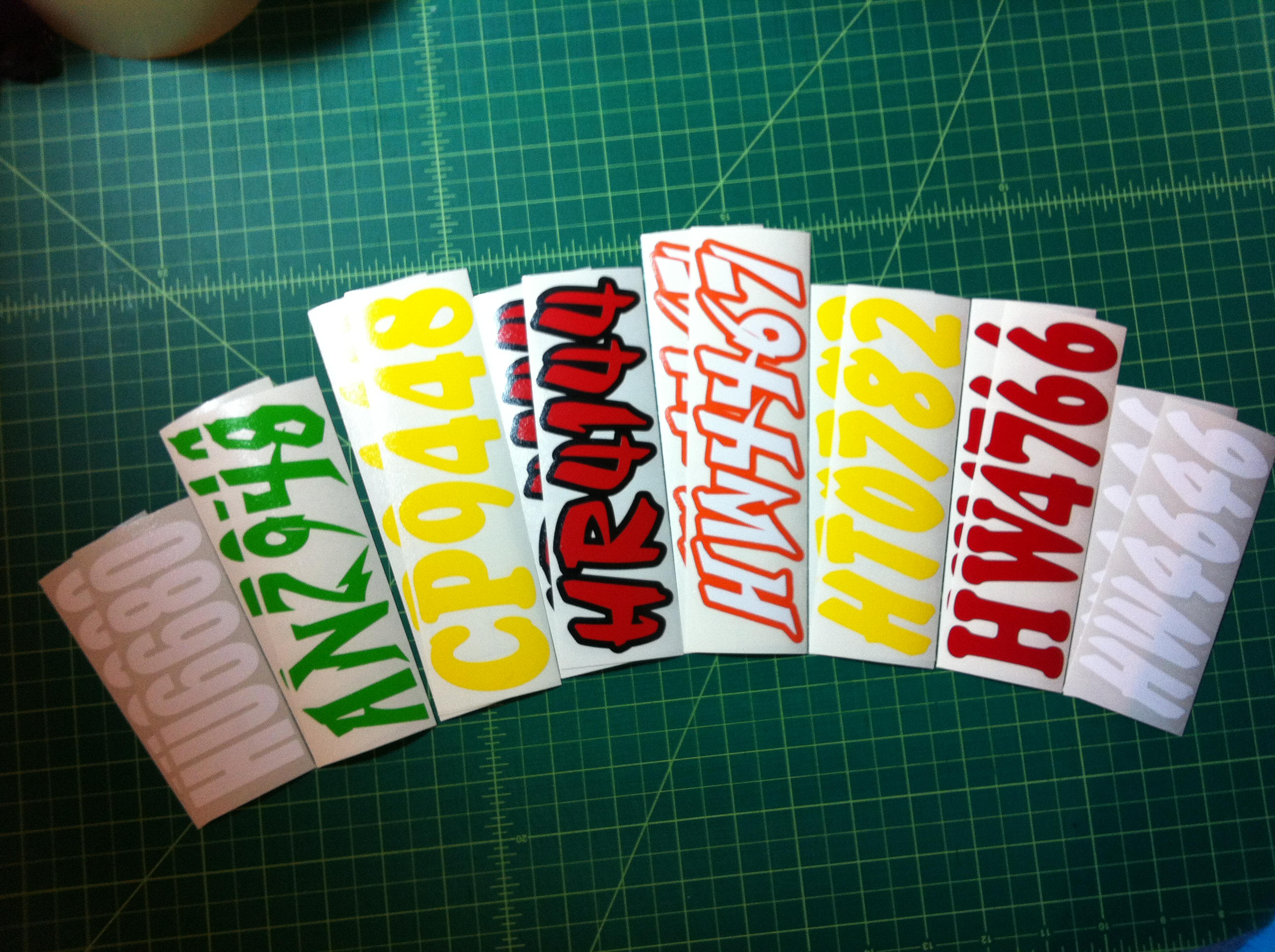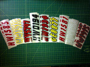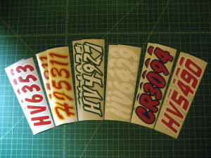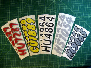 Just a few samples snowmobile registration numbers with and without outline options... (Note: the background color on some of the samples is for visual only)